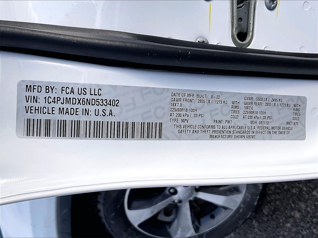 Limited | 19,187 milesStock # CT26111A | VIN # 1C4PJMDX6ND533402
